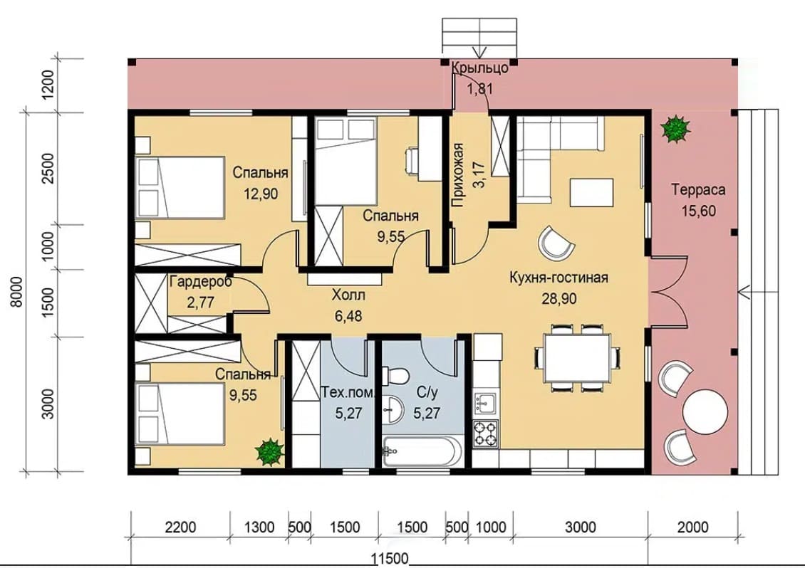 Общая площадь дома - 124 м2
